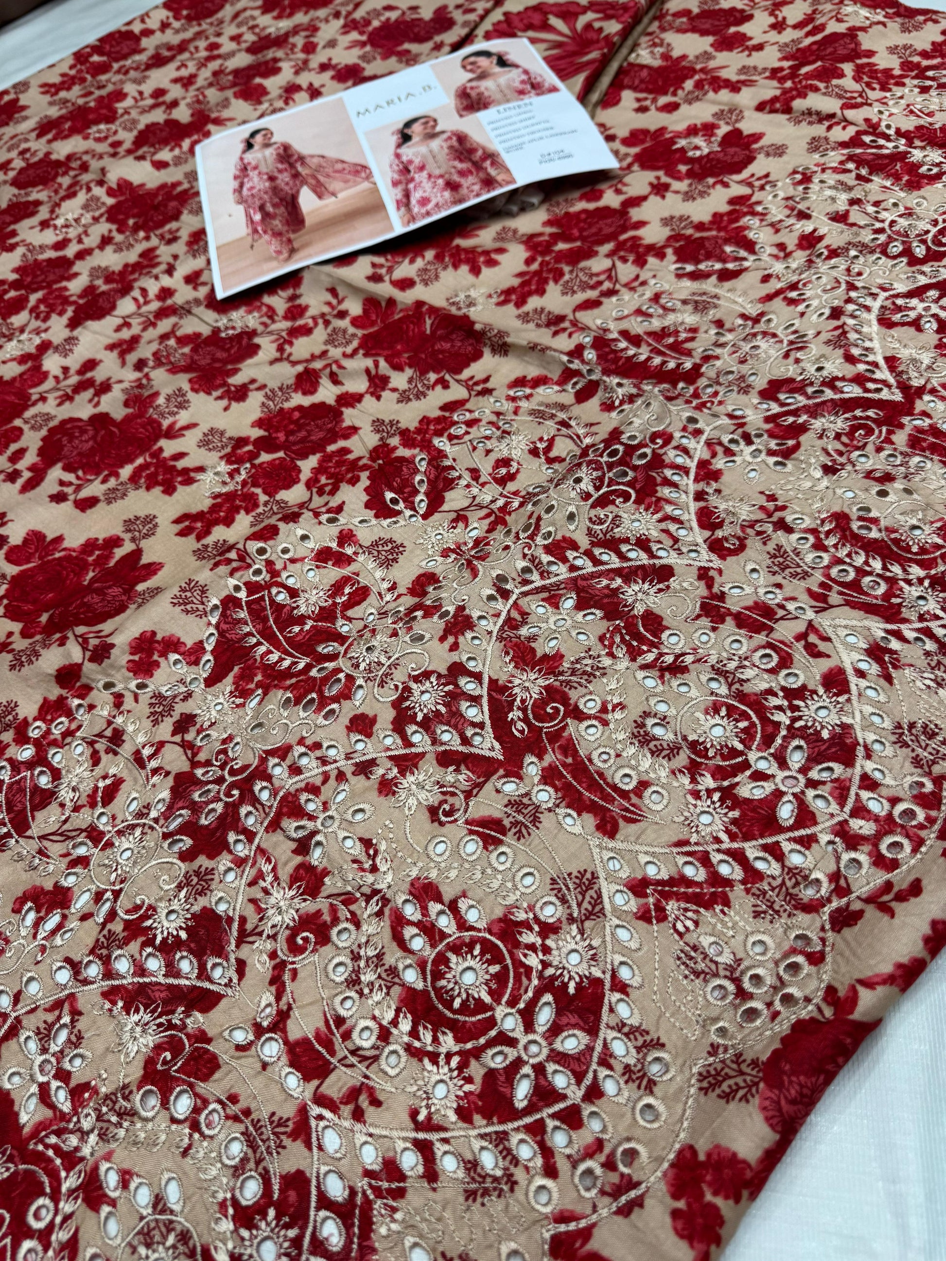 - LINEN Printed Shirt with CHIKANKARI/LASERKARI Embroidered Daman