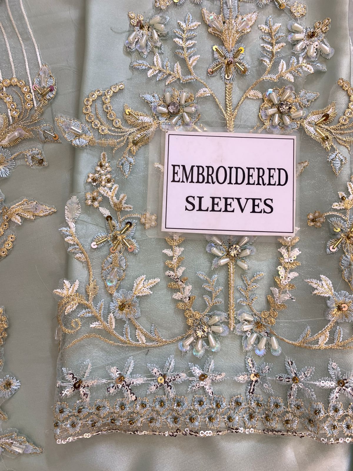 - HEAVY EMBROIDED SEELEVES CUFF BUNCHES EMBELISH WITH GLORIOUS ADDA WORK COMBINATION